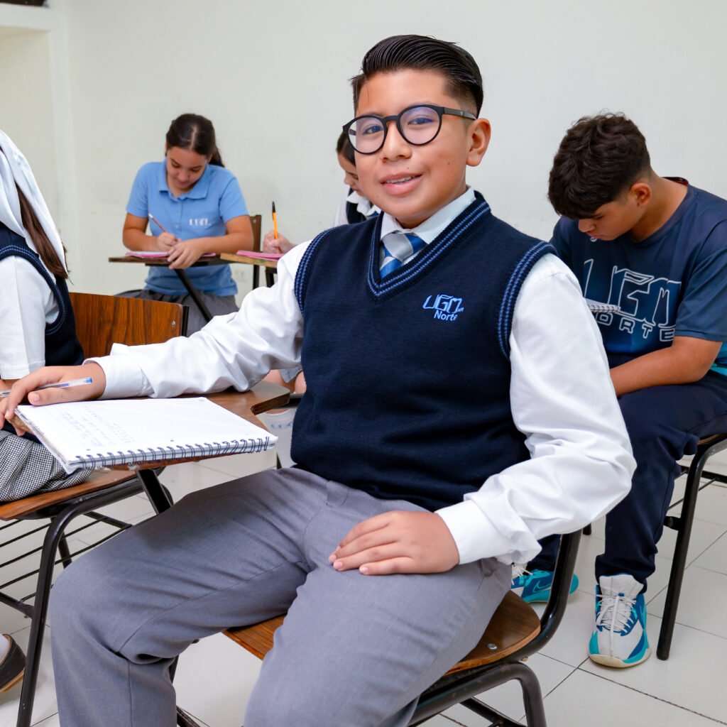 En Secundaria UGM Norte nos preocupamos por que su hijo reciba una formación académica sólida, integral y humanista, que lo prepare para enfrentar con éxito los retos del mundo actual. Nuestro modelo educativo centrado en el alumno fomenta pensamiento crítico, creatividad y trabajo en equipo en un entorno seguro, respetuoso y estimulante.