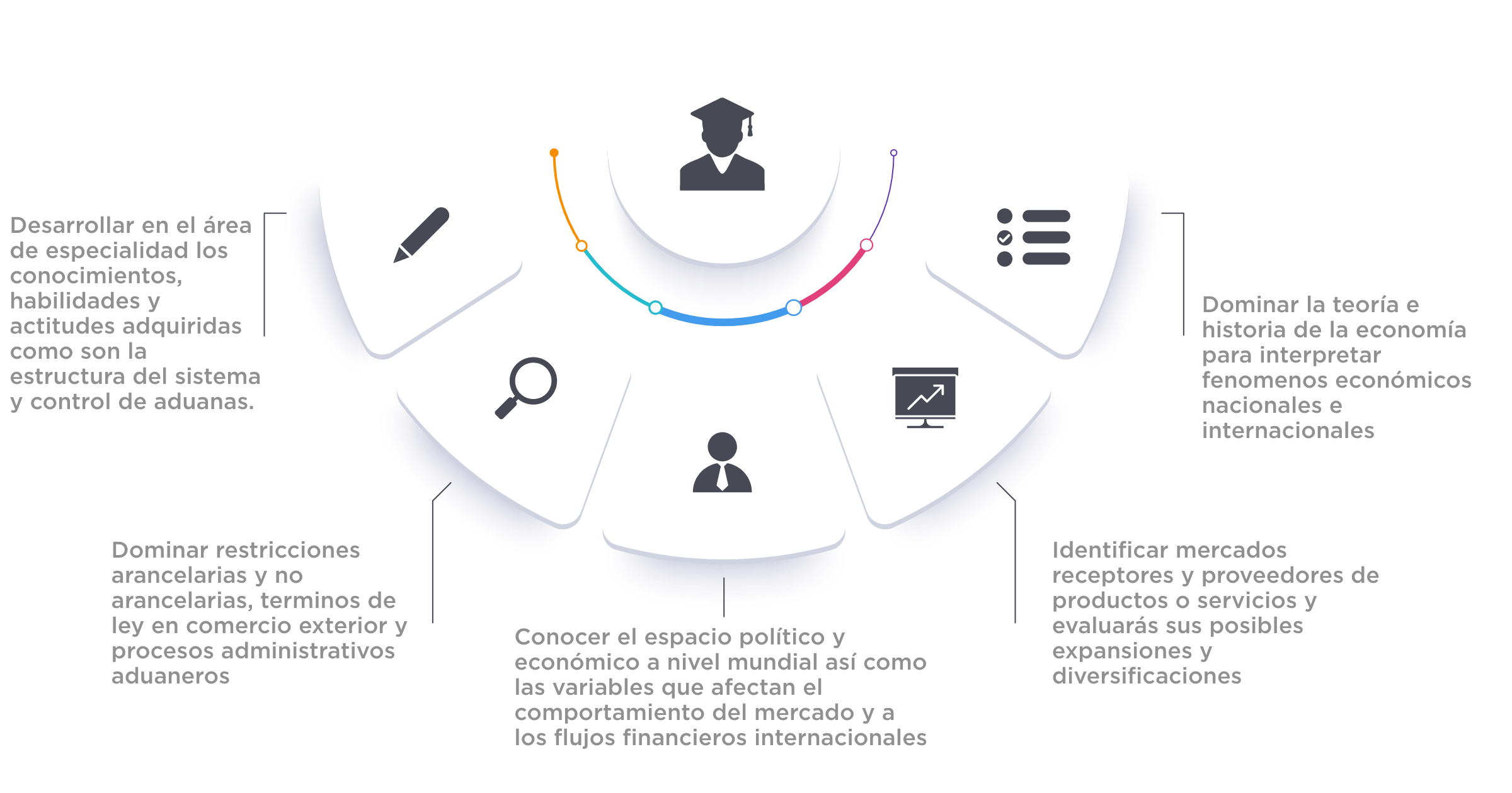 Se un profesional del comercio exterior y la gestión aduanal, capaz de planear, organizar y dirigir operaciones de importación y exportación. Prepárate para abrir fronteras, impulsar negocios y destacar en un ámbito internacional lleno de oportunidades.